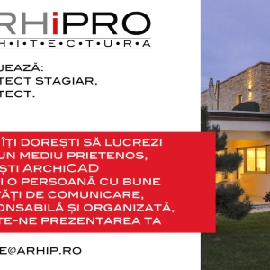 ARHIPRO ARHITECTURA SRL  cu experiență de peste 25 de ani, dorim să angajăm un coleg arhitect stagiar sau arhitect. Dacă îți dorești să lucrezi în...