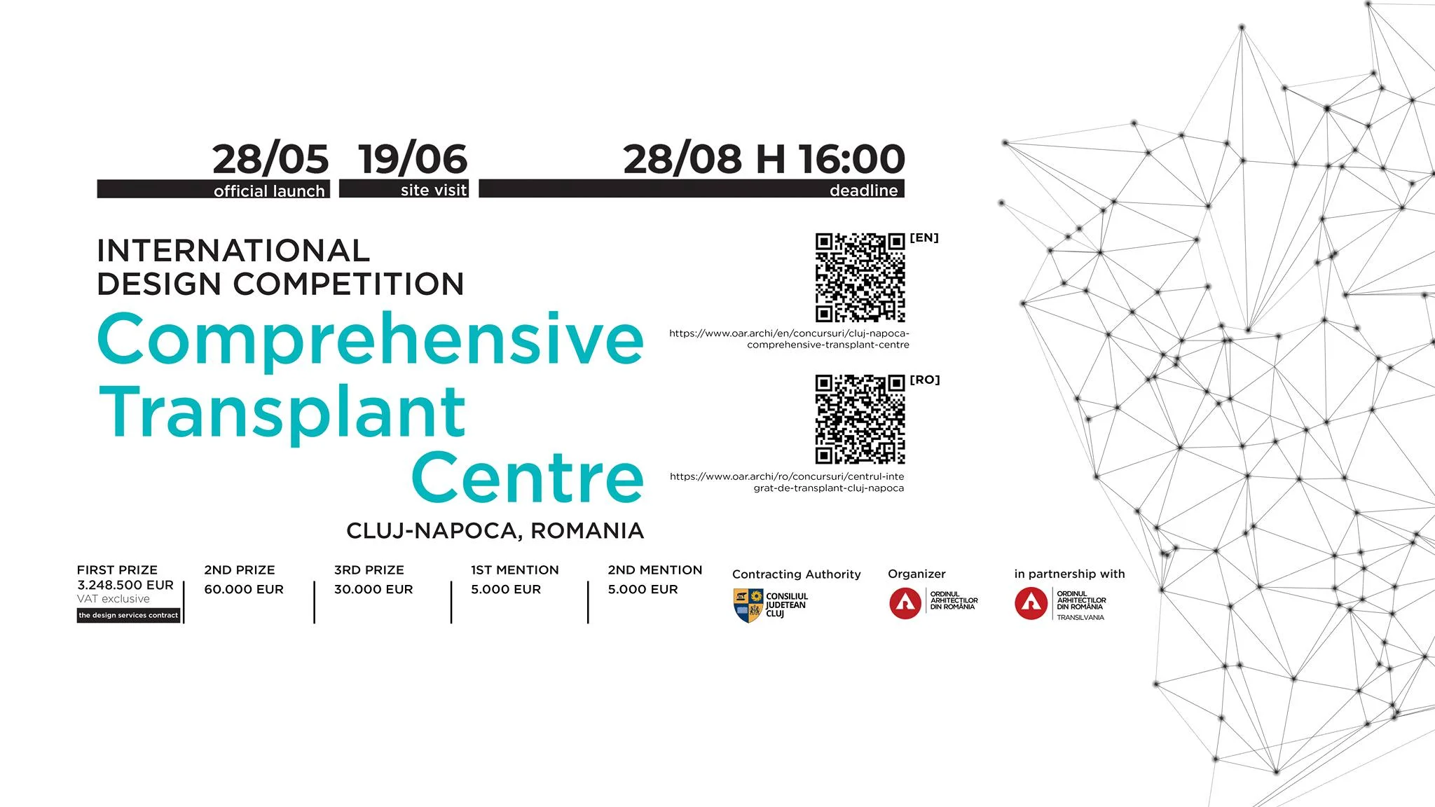 La solicitarea Autorității Contractante, în urma unor informații suplimentare puse la dispoziție de către Județul Cluj – Planșa concluzii – completare Studiu istoric (Anexa 8 – Documentație suplimentară), documentația concursului internațional de soluții „Centrul de Transplant Integrat Cluj” a fost rectificată.