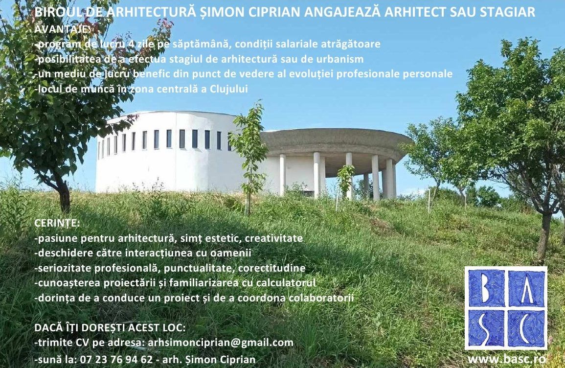 BIROUL DE ARHITECTURĂ ȘIMON CIPRIAN ANGAJEAZĂ ARHITECT SAU STAGIAR
