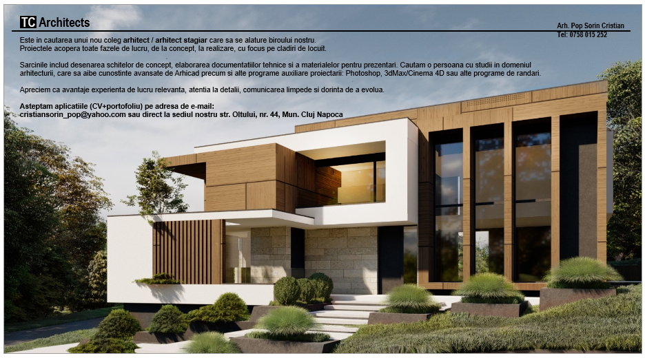 Este in cautarea unui nou coleg arhitect / arhitect stagiar care sa se alature biroului nostru.