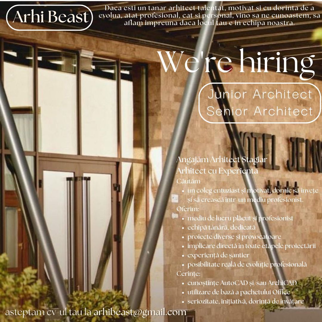 Angajăm Arhitect cu Experiență - Dacă ai deja un parcurs profesional și îți dorești un loc unde să te implici și să evoluezi, te așteptăm în echipa noastră!
